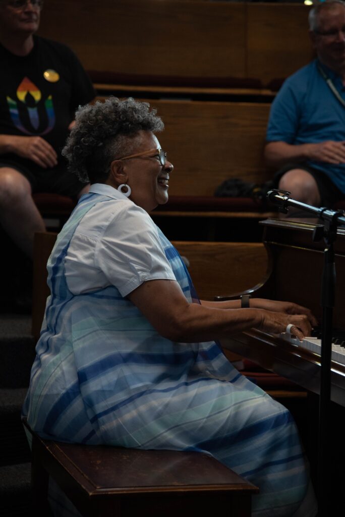 Angie Richardson grew up in Charleston, West Virginia where she began singing in church at age six. At age ten, she began playing the piano by ear. Born into a musically inclined family, Angie’s experiences with music in her church and with her family shaped her life. She has toured the world with the Ethel Caffie-Austin Singers, performed for the West Virginia Division of Culture and History’s Vandalia Gathering, been a special guest on Bob Thompson’s Public Broadcasting Christmas jazz special, and performed at dozens of special events and festivals across the country. As a gospel music workshop clinician, Angie travels throughout the country performing gospel music workshops for churches and choirs.