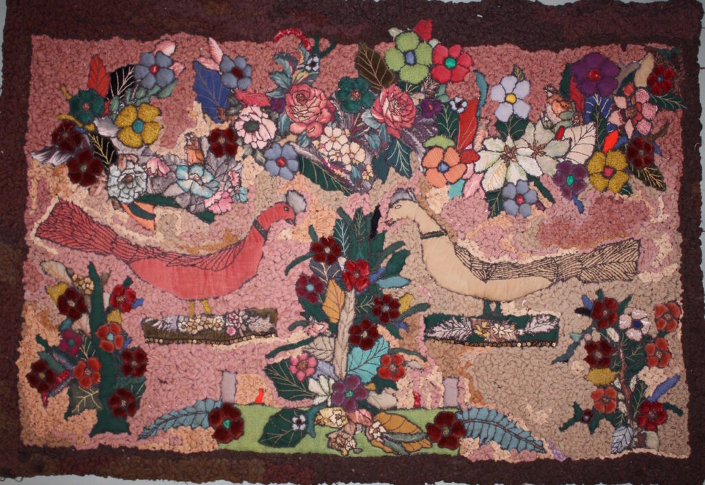Nevada will be joined by special guest Susan Feller, a writer, historian, and artist based in West Virginia. Embroidery, applique’ and rug hooking; the traditional handicrafts she uses; are recognized today as Fine Craft in mixed media exhibits. Each utilitarian object or contemporary art piece created reflect her studies past and present of Appalachian regional material culture. Feller’s works have received national awards with two in the permanent collection of WV State Museum in Charleston. An advocate for the arts in Appalachia, she has served on the board of Tamarack Foundation for the Arts and regional review panels. She curates fiber art exhibits and mentors craftspeople on their professional business path. Author of Design Basics for Rug Hookers, and published articles about the McDonald sisters of Glenville, WV she is respected as an instructor and researcher.