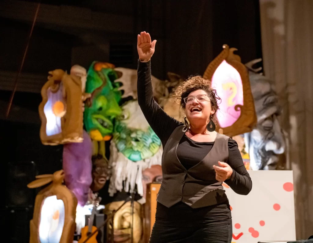 Emily is a singer, songwriter, and teacher based in New York City.  Her work as both a singer and creative artist crosses many genres, and she is interested in exploring the spaces in between. Emily has performed with artists such as Meredith Monk, Annie Dorsen, Betsey Biggs, and Bang on a Can. Most recently, she wrote and co-wrote music for the 2025 installation We Will Sing by artist Ann Hamilton in Bradford, England, where community voices echo in the space of a former wool factory. Emily is a teaching artist for Carnegie Hall, where she leads songwriting workshops for parents and families in the Lullaby Project, hosted the video series “Sing with Carnegie Hall,” and is featured on Carnegie’s “Great Music Teaching” series. As part of a Carnegie Hall commission, Emily co-wrote Nooma (2019), an immersive opera for babies ages 0-3, and co-wrote songs for the album A Colorful World by Falu, which won a Grammy for Best Children’s Album in 2022. A specialist in early music, Emily is the Assistant Festival Director at Amherst Early Music, and weaves elements of medieval and renaissance music into her original work. She teaches vocal harmony and technique at the Jalopy Theater and School of Music and is a professional whistler and two-time International Whistling Champion. Emily can be heard with the vocal improvisation ensemble Moving Star, the close-harmony trio Up At Dawn, and on her forthcoming album produced by Jalopy Records of songs for the young and the young at heart.
