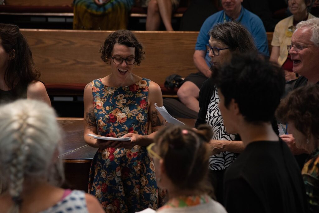Whether it’s the rich harmonies of the all-group sings, the intricate stylings of solo singing learned in a class, or a serendipitous collaboration with a new singing buddy in a jam, Vocal Week offers a diverse range of musical delights for singers of all interests. With Vocal Week advisor Val Mindel at the helm, this week is the place to strengthen your skills and love of singing.